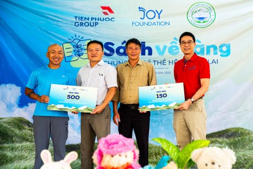 Trong số này, 300 bộ sách do Tiến Phước Group tài trợ, 200 bộ còn lại từ JOY Foundation chung tay ủng hộ.